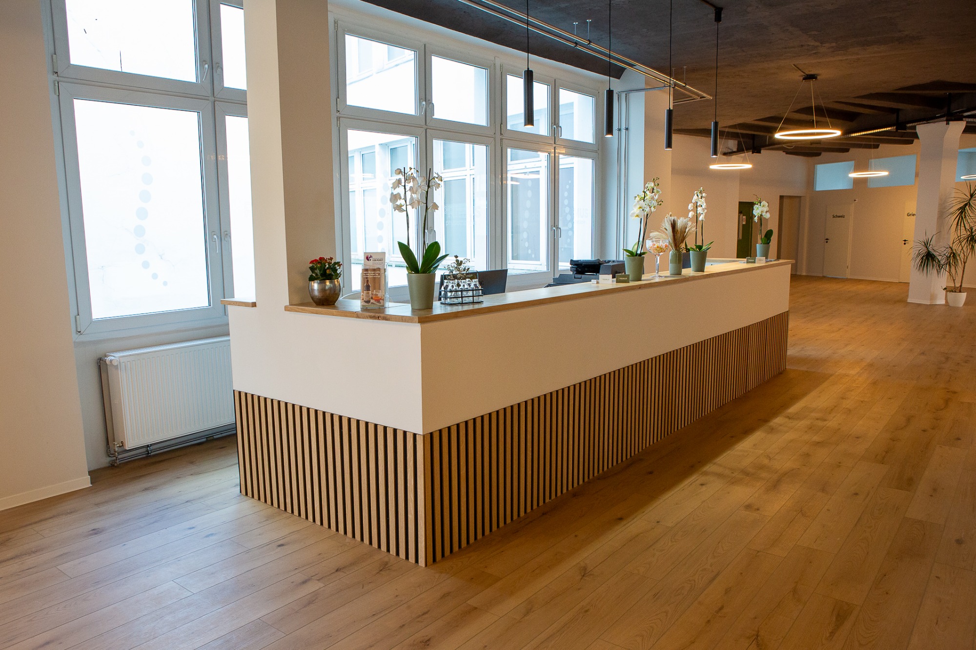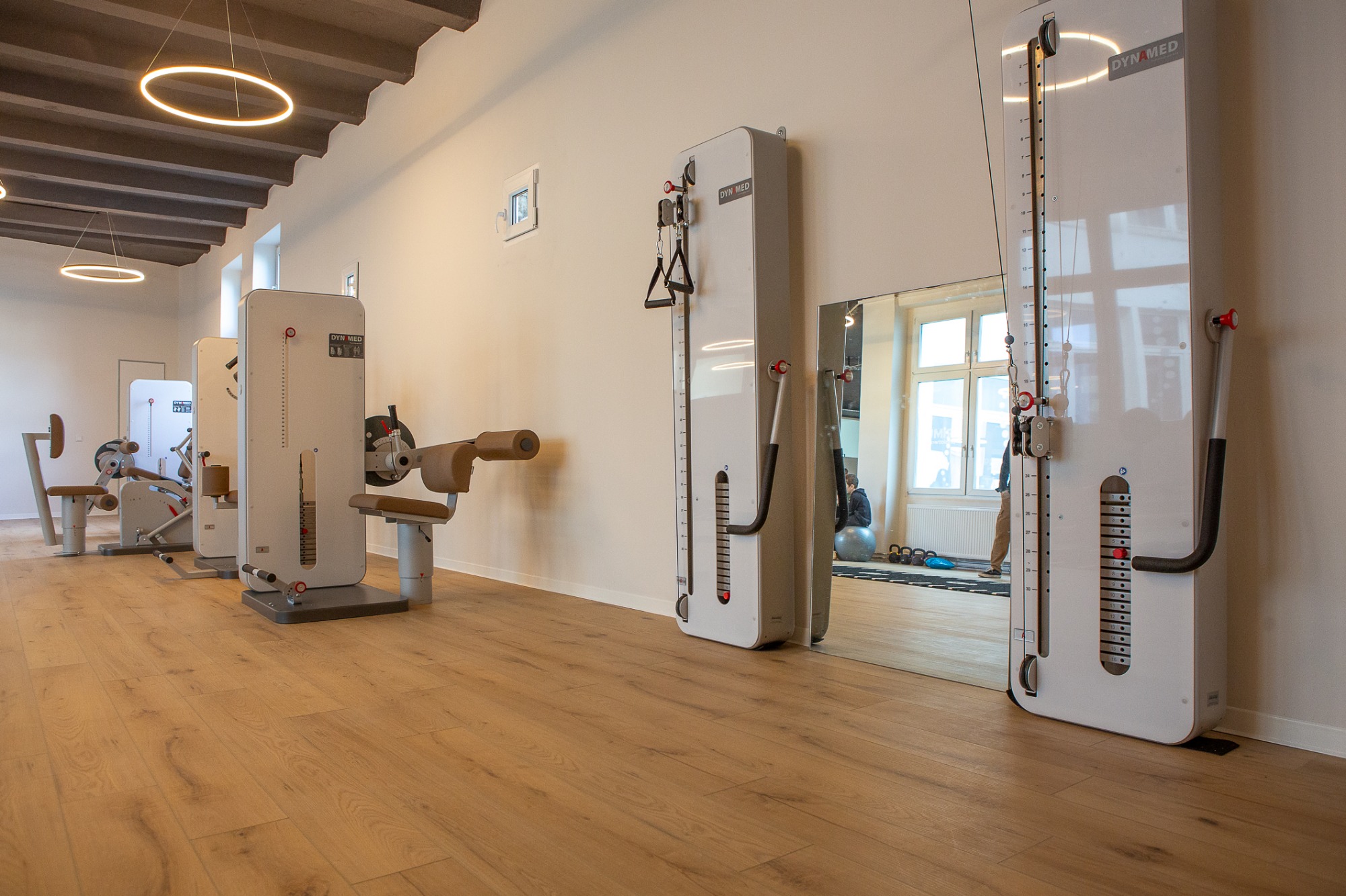 Unsere Praxis ist mehr als ein Behandlungsort – sie ist ein Raum für Entwicklung, Kraft und neue Energie. Auf über 600 m² verbinden sich offener Industriestyle, durchdachtes Design und eine warme, einladende Atmosphäre zu einem Ort, an dem man sich gerne bewegt und gerne ankommt. Neben unseren individuell gestalteten Behandlungsräumen bildet der großzügige Trainingsbereich das Herz der Praxis: ein Ort für Aufbau, Fortschritt und Vertrauen in den eigenen Körper. Jeder Bereich erzählt seine eigene Geschichte und alles ist darauf ausgerichtet, dass Sie sich bei uns gut aufgehoben fühlen.